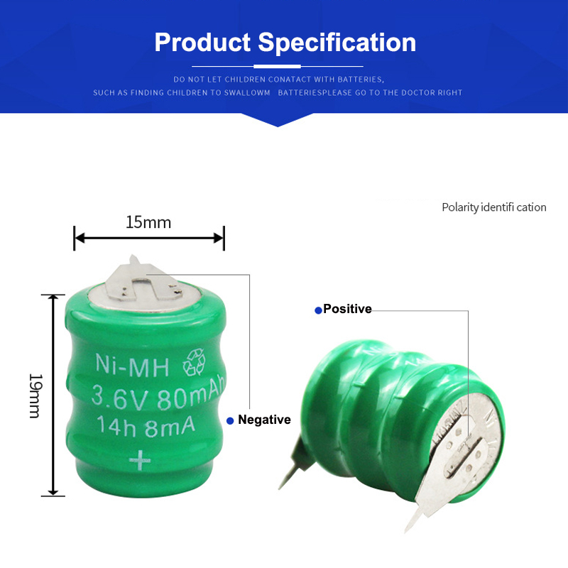 - Product description: 3.6V 80mAh Button-Type Ni-MH Rechargeable Battery with Soldering Pins For PLC Industrial Control Motherboard